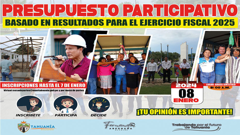 Tahuanía.- La Municipalidad Distrital de Tahuania extiende una cordial invitación a toda la población para unirse al proceso del Presupuesto Participativo 2025.