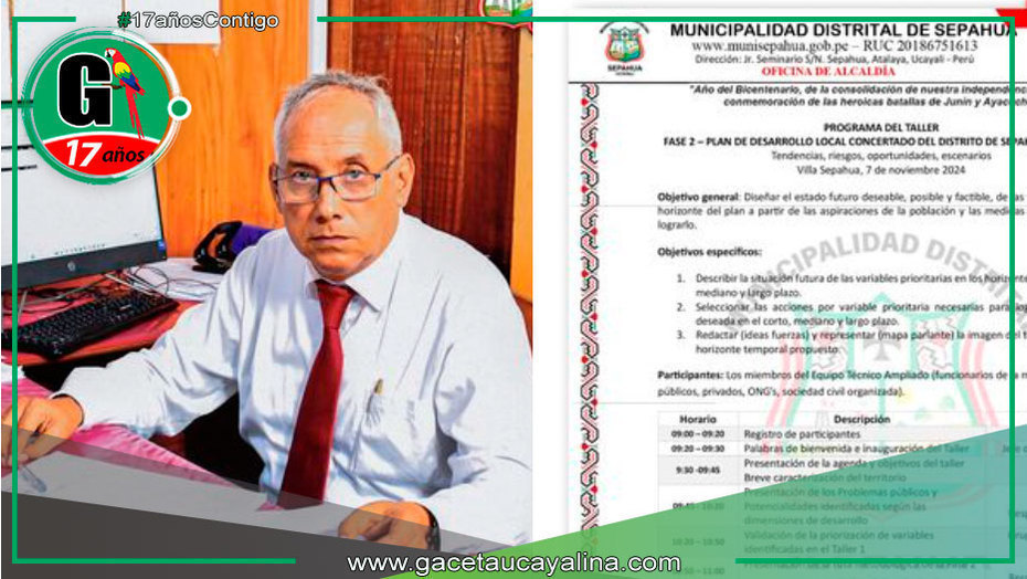 Atalaya.- Con el propósito de proyectar el desarrollo del distrito de Sepahua hacia el año 2034, el segundo taller de planificación territorial del Plan de Desarrollo Local Concertado se llevará a cabo este jueves 7 de noviembre.