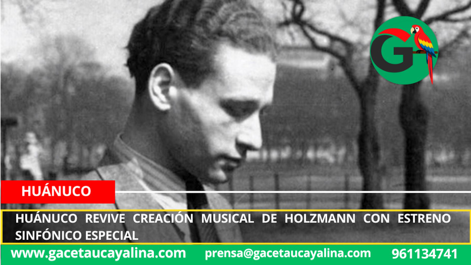 Huánuco.- El ‘Concierto de Calicanto’, una de las obras más importantes del compositor peruano-alemán Rodolfo Holzmann, será presentado por primera vez este miércoles 26 de noviembre, a las 7:00 de la noche, en el auditorio del colegio parroquial San Luis Gonzaga, en la ciudad de Huánuco. La Universidad Nacional Daniel Alomía Robles (UNDAR) es la encargada de este esperado estreno mundial.