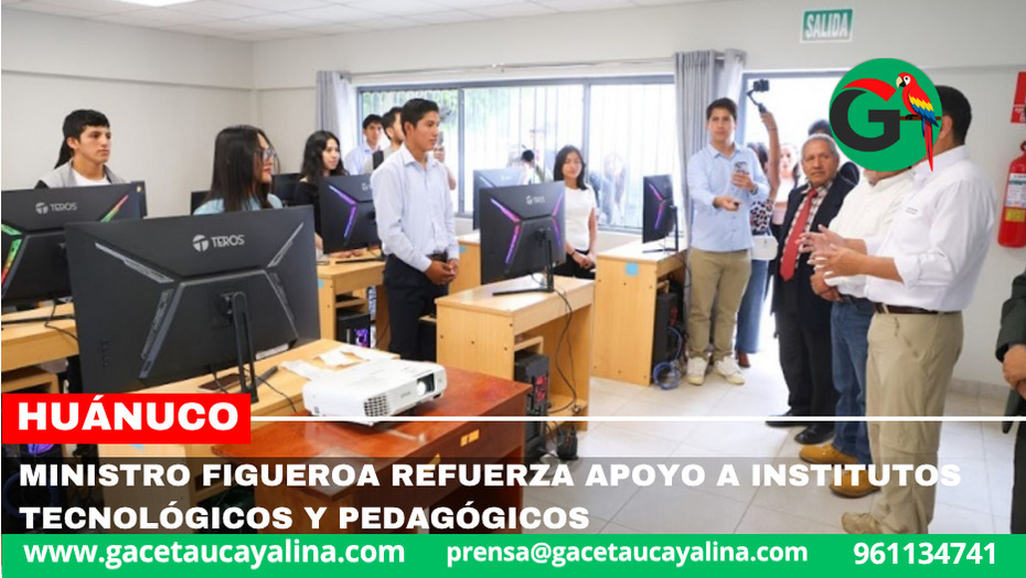 Acompañado del gobernador regional de Huánuco, Antonio Pulgar, el ministro recorrió las instalaciones del instituto con el fin de verificar personalmente las condiciones en que se dictan las clases en esta casa de estudios, que se prepara para obtener su licenciamiento oficial.