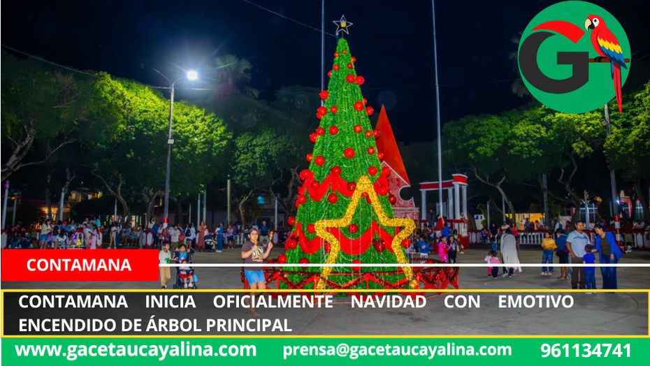 Contamana inicia oficialmente Navidad con emotivo encendido de árbol principal