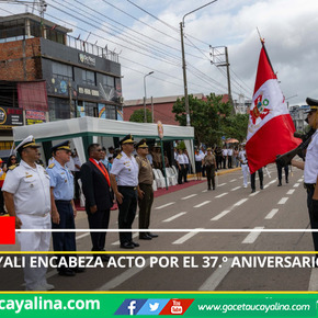 Ucayali.- Un sentido homenaje a las víctimas del reciente accidente fluvial en el río Ucayali marcó la ceremonia central por el 37.º aniversario de la Policía Nacional del Perú (PNP), actividad realizada en la avenida Centenario de Pucallpa y encabezada por el presidente de la Corte Superior de Justicia de Ucayali, Dr. Hermógenes Vicente Lima Chayña.