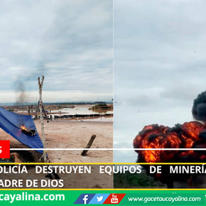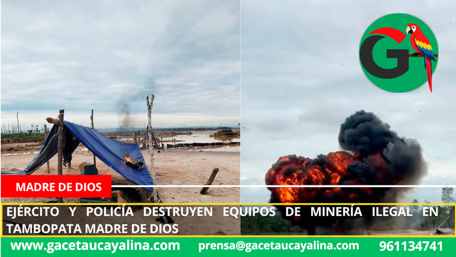Ejército y Policía destruyen equipos de minería ilegal en Tambopata Madre de Dios.