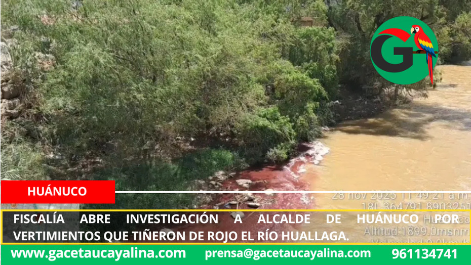 Fiscalía abre investigación a alcalde de Huánuco por vertimientos que tiñeron de rojo el río Huallaga.