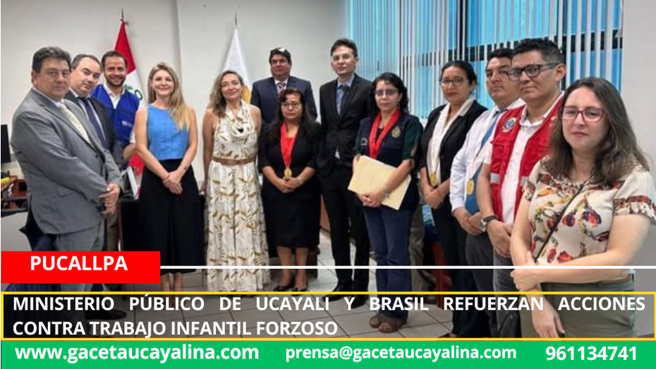 Pucallpa.- La erradicación del trabajo infantil y forzoso en la Amazonía peruana dio un paso firme con el inicio del proyecto “País Perú: hacia un desarrollo sostenible en la Amazonía”, una iniciativa respaldada por la Organización Internacional del Trabajo (OIT) y desarrollada bajo el enfoque de cooperación Sur-Sur. En este marco, el Ministerio Público de Ucayali recibió a una delegación técnica de Brasil para compartir experiencias y estrategias orientadas a fortalecer el acceso a una justicia más efectiva y humana.