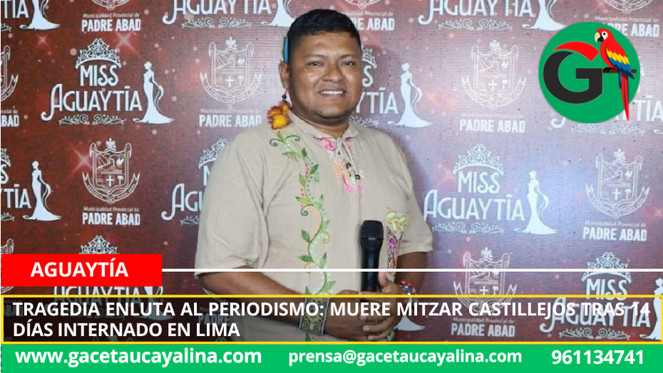 Aguaytía.- El periodista Mitzar Castillejos Tenazoa, conductor de Radio Latín Plus 107.7 FM y director del medio digital Bato a Informarte Noticias, falleció este viernes 26 en la ciudad de Lima, catorce días después de haber sido víctima de un ataque armado en Aguaytía, región Ucayali.