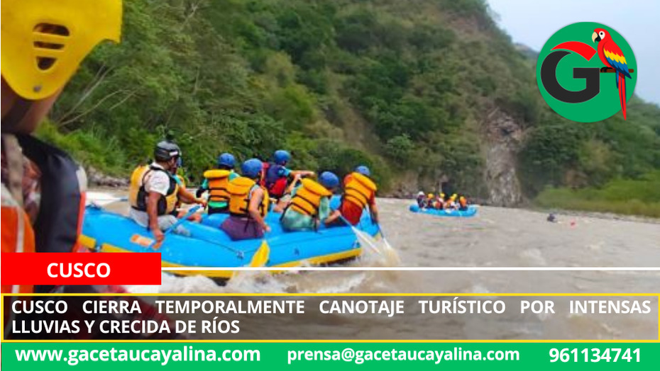 Cusco.- Ante el incremento de las lluvias intensas y el aumento del caudal de ríos y afluentes en la región la Gerencia Regional de Comercio Exterior y Turismo Gercetur de Cusco dispuso el cierre temporal de la actividad de canotaje turístico que se desarrolla principalmente en el río Vilcanota y otros afluentes con la finalidad de garantizar la seguridad e integridad de los turistas nacionales y extranjeros así como de los prestadores de servicios turísticos