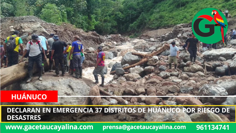 Huánuco.- Ante el inminente incremento de precipitaciones pluviales previsto para febrero, el Gobierno declaró el estado de emergencia en 37 distritos de las 11 provincias del departamento de Huánuco, como medida preventiva frente a posibles deslizamientos, inundaciones y otros eventos asociados a lluvias intensas.