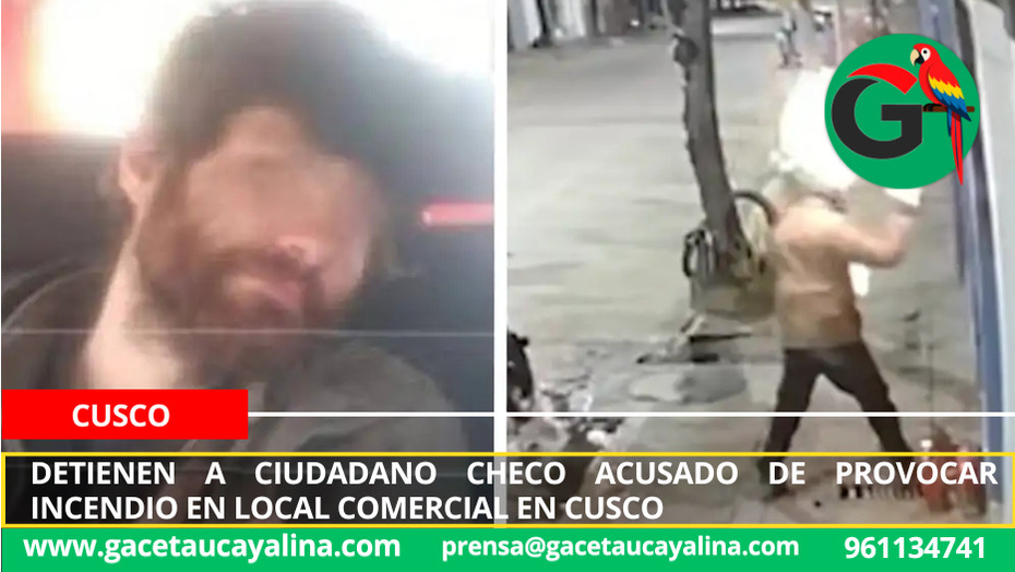 Cusco.- Tres personas, entre ellas dos menores de edad, resultaron afectadas tras un incendio registrado la madrugada del viernes 23 de enero en un establecimiento de venta de motocicletas y repuestos, ubicado en la calle Huayna Cápac, en el centro histórico del Cusco. La Policía Nacional del Perú (PNP) detuvo posteriormente a un ciudadano de nacionalidad checa, identificado como Ales Hemer (31), señalado como el presunto autor del siniestro.