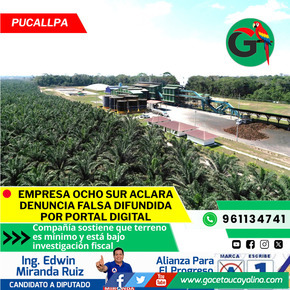 Pucallpa.- La empresa Ocho Sur aclaró públicamente una información difundida de manera engañosa por el portal digital Infórmate Ucayali y replicada por otros medios, en la que se afirma que la compañía estaría ocupando ilegalmente un terreno de un supuesto agricultor, versión que carece de sustento real y legal.