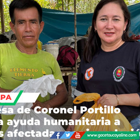 Pucallpa.- La alcaldesa de la provincia de Janet Castagne, en Coronel Portillo, llegó hasta el caserío San Pedro de Bello Horizonte, en la jurisdicción de Callería, para entregar ayuda humanitaria a 14 familias damnificadas por la creciente del río en la zona del Alto Ucayali.