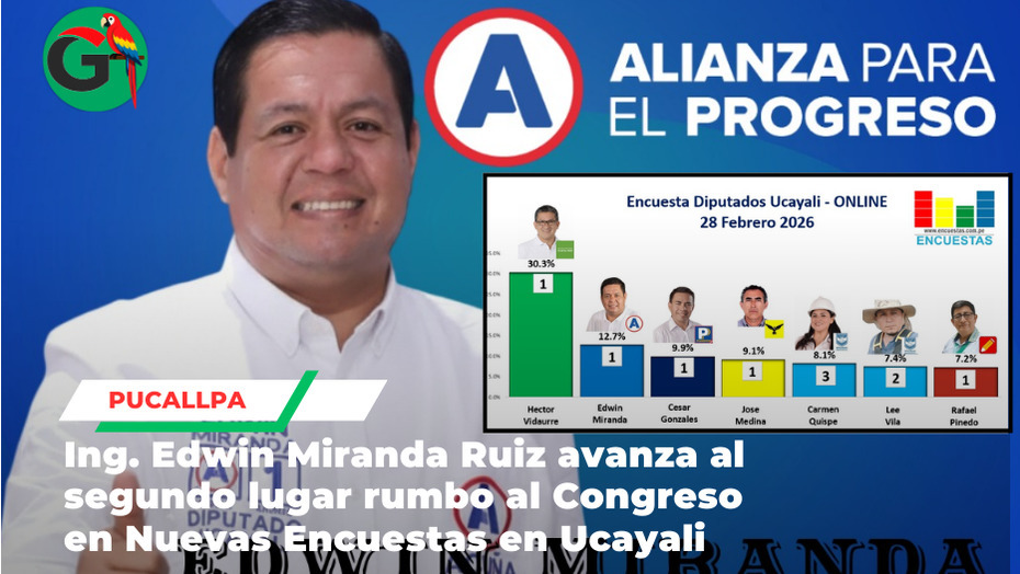Mientras tanto, el avance del Ing. Edwin Miranda Ruiz en los sondeos confirma que la disputa por la representación parlamentaria en Ucayali entra en una etapa decisiva, con un electorado que evalúa propuestas y liderazgo en busca de respuestas concretas para el desarrollo de la región.